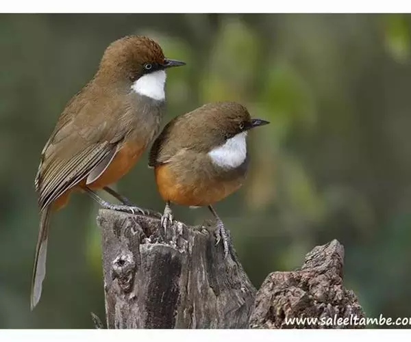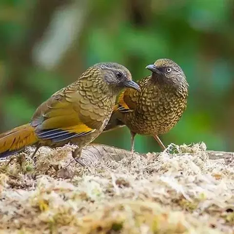 大噪鹛:中型鸟类,体长32-36厘米。额至头顶黑褐色,背栗褐色满杂以白色斑点,…