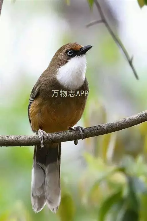 白喉噪鹛(学名:Garrulax albogularis)中型鸟类,体长26~30厘米。前额或整个头顶棕栗色,其余上体橄榄褐色。颏、喉白色,胸具橄榄褐色横带,腹辉棕色或棕白色。外侧四对尾羽具宽阔的白色端斑。指名亚种(G.a.albogularis)的额呈棕色,台湾亚种(G.a.ruficeps)整个头顶及颈背全棕色,尾下覆羽白色。特征极明显,野外不难识别。中国还未见有与之相似的种类。