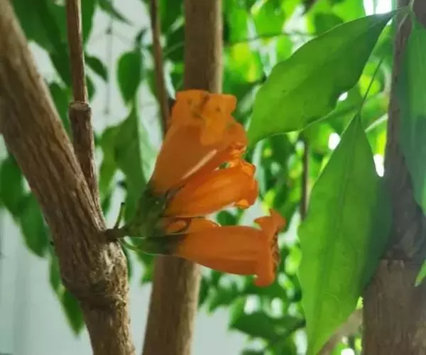 花朵向下悬垂。叶有柄,互生,集株端,长椭圆形状,先端渐尖,粗钝锯齿缘,主叶脉掌状,有五至七条。绿色。全年出叶,尤以3-8月为盛。