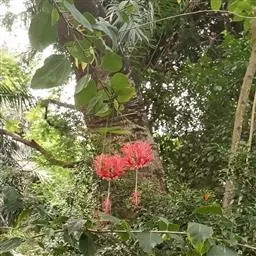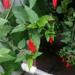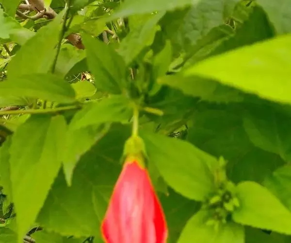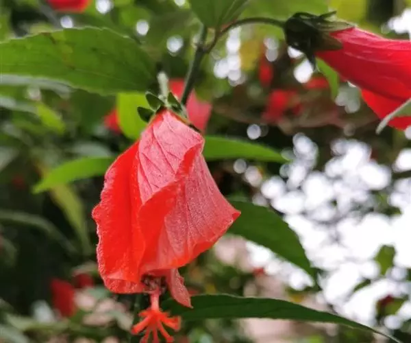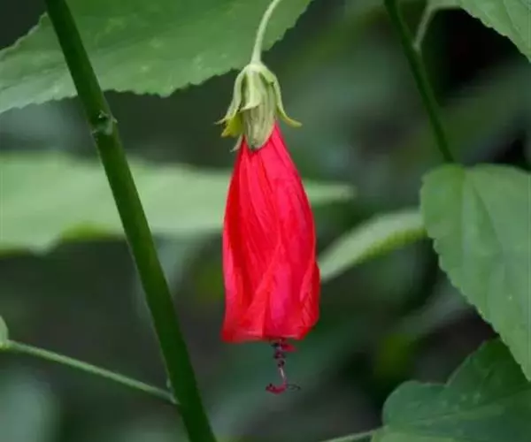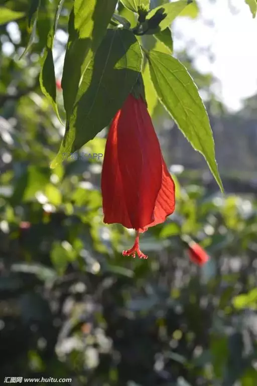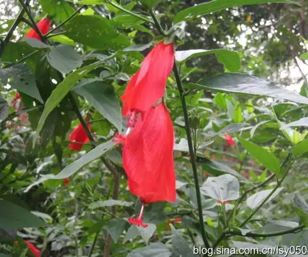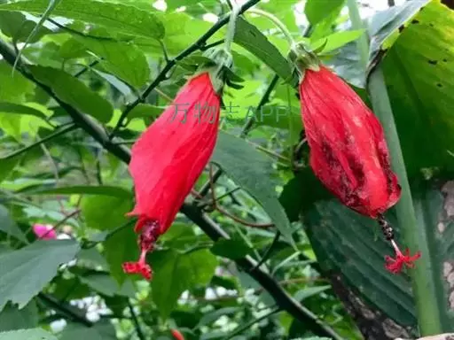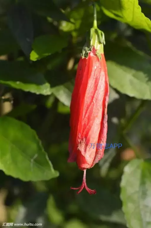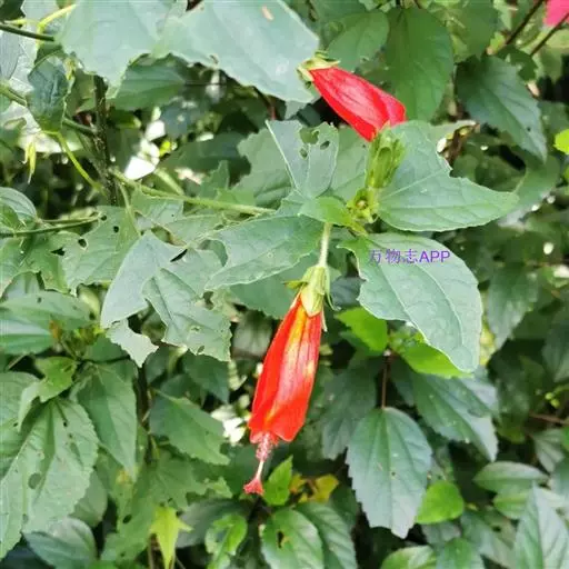 悬铃花,拉丁学名(Malvaviscus arboreus Cav.),属常绿小灌木。外型略似朱槿,高30-60cm,鲜红色花朵,较为奇特,花期终年、花量多。