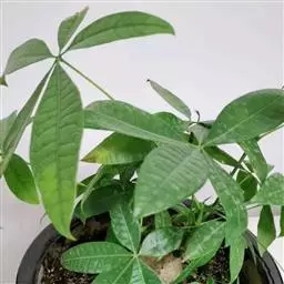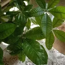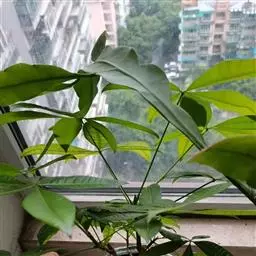 瓜栗 Walp. ),俗称发财树,木棉科小乔木,高4-5米,树冠较松散,幼枝栗褐色,无毛。小叶具…