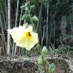 黄蜀葵 Medicus),是锦葵科秋葵属一年生或多年生草本。全株疏被长硬毛;叶近圆形,…
