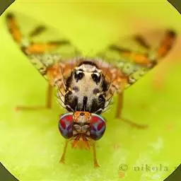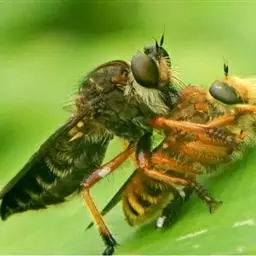 10.大头金蝇授粉对油菜产量的影响 油菜在不同授粉方式下,释放大头金蝇成虫授粉与人工授粉、蜜蜂授粉效果之间差异不显著,但明显好于家蝇授粉效果,与相同密度条件下两种蝇类混合释放有明显差异,且有交互作用。前期释放比后期释放大头金蝇授粉效果明显。释放大头金蝇蛹,待其羽化后和蜜蜂授粉比较,油菜果荚数和果荚长度间有显著差异,而千粒重和主花序角果数间没有显著差异。仅有蜜蜂授粉的油菜母本的全株角果数低,说明大头金蝇和蜜蜂在访问油菜不同性别花的情况有所差异。 通过系统研究大头金蝇的人工饲养、授粉行为学基础、授粉效果。结果表明,大头金蝇成虫具有较强地抗逆能力,能够进行规模化人工饲养。特有的授粉形态和授粉行为,以及与其它昆虫的飞行能力、授粉效果比较,证明大头金蝇可以满足设施农业授粉的需要,极具推广利用价值。