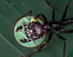 雌虫:体长9~10毫米左右。在额部的眼前缘稍微向内凹入,在额中段的间额宽常为一侧额的2倍或超过2倍;腹侧片及第二腹板上以淡色毛占多数;受精囊略呈球形,尖端有一小乳头状突起,其余特征可参见雄性 。