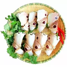 本品全角似蟹,扁椭圆形或近六边椭圆形,极少数为梭形,长3.5-8cm,宽3-6cm,厚1-2cm,灰色或浅灰棕色至浅棕褐色。背部稍隆起,有的较光滑,有光泽,有的留有蟹背上的纹理,有的尚附着其他生物残壳;腹部多略低凹,表面有时已破坏;节状足大多数残缺不全;全体凹陷处及足断处常填满泥岩。体较重,质坚硬;可砸碎,断面蟹壳部分呈薄层状,灰棕色,中间似石灰岩,灰色,较粗糙。气微,味淡。