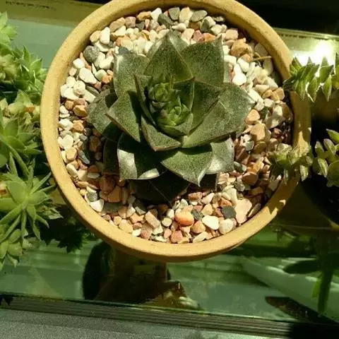 女雏是景天科石莲花属的多肉植物。特征是小巧的株形和橙粉色叶缘。极易生侧芽,…