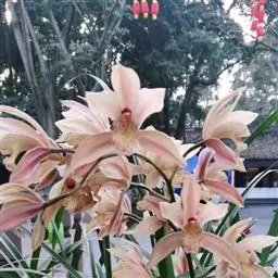 寒兰是兰科兰属的地生草本植物。茎为椭圆形;叶呈带状,尾部修长渐尖,叶脉较明显;每秆花枝开5-12朵,…