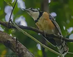 白肩鹊鵙是小型鸣禽。喙粗壮而侧扁,先端具利钩和齿突,嘴须发达;翅短圆;尾长,楔形;跗跖强健,趾具钩爪。…