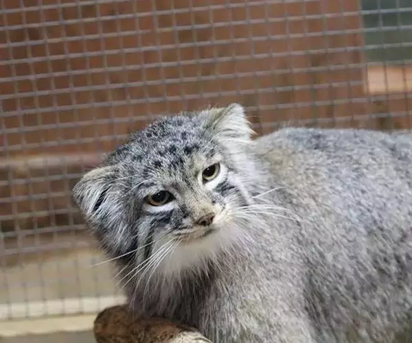 兔狲体重2千克,体长50-65厘米。体形粗壮而短,大小似家猫。兔狲的额部较宽,吻部很短,瞳孔为淡绿色,收缩时呈圆形,但上下方有小的裂隙,呈圆纺锤形。耳短宽,耳尖圆钝,两耳距离较远,耳背为红灰色。全身被毛极密而软,绒毛丰厚,尤其是腹部的毛很长,为背毛长度的一倍多。背中线棕黑色,体后部有较多隐暗的黑色细横放,头部灰色,带有一些黑斑,眼内角白色,颊部有两个细黑纹,下颌黄白色,体腹面乳白色,颈下方和前肢之间浅褐色,四肢颜色较背部稍淡,亦有2、3条短而模糊的黑色横放,尾巴粗圆,长度约为20-30厘米,上面有明显的 6-8条黑色的环细纹,尾巴的尖端长毛为黑色。幼仔身上横纹显着,比较宽而长,尾上有6条纹。