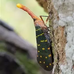 • 龙眼鸡是同翅目蜡蝉科蜡蝉属昆虫,又名龙眼蜡蝉、黄虫,长鼻子。体色艳丽;头额延伸如长鼻,额突背面红褐色,…