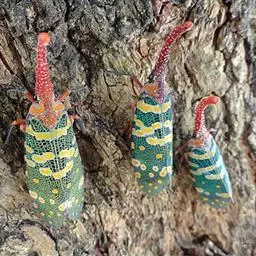 龙眼鸡是同翅目蜡蝉科蜡蝉属昆虫,又名龙眼蜡蝉、黄虫,长鼻子。体色艳丽;头额延伸如长鼻,额突背面红褐色,…