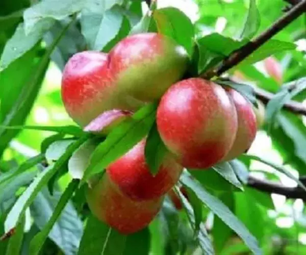 红芒果油桃树势中庸,因其果面红色,果形奇特像芒果而得名,优质、特早熟、甜香型黄肉油桃品种。中国 农业科学院郑州果树研究所培育。