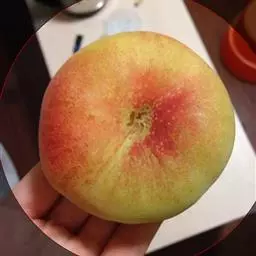 中熟甜油桃新品系。果实短椭圆形,纵径6.73厘米,横径6.55厘米,侧径6.55