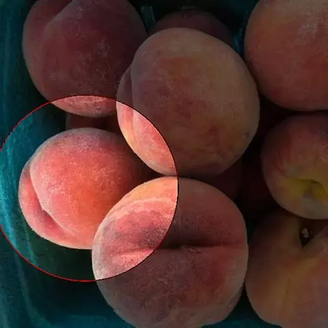 油桃表皮是无毛而光滑的、发亮的、颜色比较鲜艳,好象涂了一层油;普通的桃子表皮有绒毛,颜色发 红或微黄,无亮光。