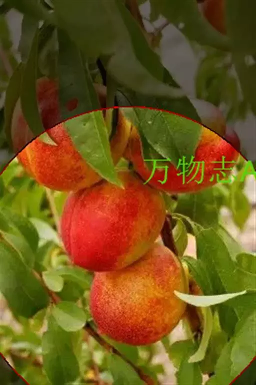 油桃 色点或晕,不易剥离。果肉白色,肉质细,硬溶质,味甜,风味较浓,黏核,鲜核重82克。含可溶性固形物7.4%~10.5%,可溶性糖7.0228%,可滴定酸0.3624%,维生素C7.682 8毫克100克。北京地区7月8 ~15日成熟。 树势强健,树冠较大,发枝力强。复花芽较多,占50%。果实7月上中旬采收,果实发育期85天左右。落叶期为10月下旬,年生育期210天左右。树姿半开张,一年生枝绿色,阳面红褐色。叶长椭圆披针形,叶面平展或略有皱,叶基楔形,叶尖渐尖,深绿色,具有光泽,蜜腺肾形,2~5个。花为铃形,雌蕊高于雄蕊,花粉多。该品种为优良的早熟油桃品种,果个大且圆整,风味甜,丰产。多雨年份有少量裂果。