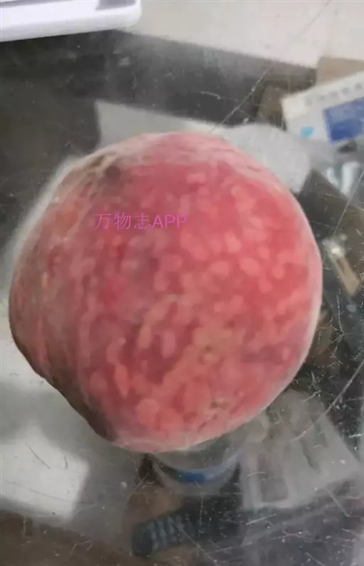 中熟甜油桃新品系。果实近圆形,纵径6.70厘米,横径6.60厘米,侧径6.60厘米。平均单果重133克,大果重154克。果顶圆,缝合线浅,两侧对称,果形整齐。果皮底色黄白,果面近全面着玫瑰红色晕,不易剥离。果肉白色,肉质细,硬溶质,味甜,半离核。可溶性固形物含量10.0%。