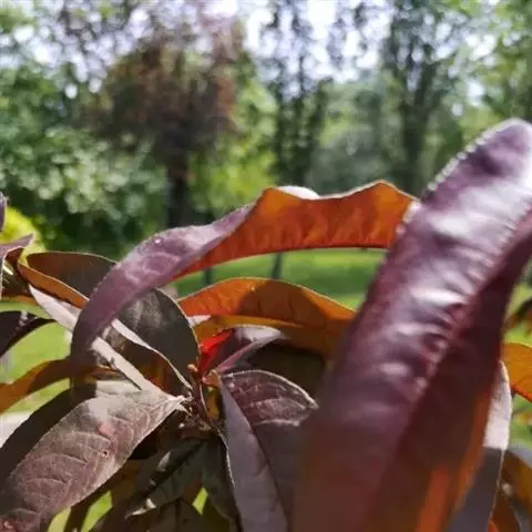 紫叶桃花是李亚科,桃属植物桃的变种,叶为窄椭圆形至披针形,长15厘米,宽4厘米,先端成长而细的尖端,…