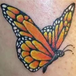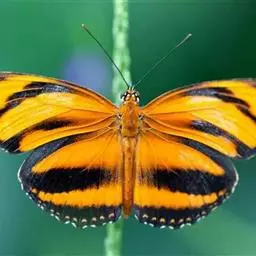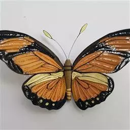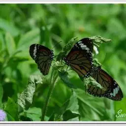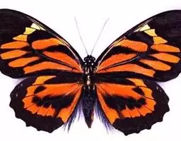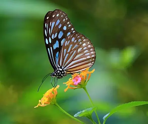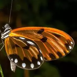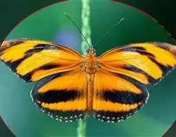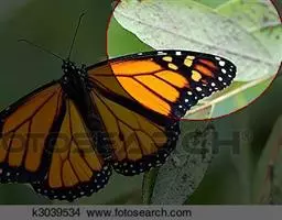 黑脉金斑蝶:翅阔8.6-12.4厘米。雄蝶较雌蝶为大。成年蝶颜色鲜艳,翅膀上有显眼的橙色及黑色斑纹…