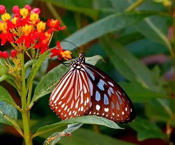 虎斑蝶,Danaus genutia ,是斑蝶属的一种,常见于湿地公园内。…