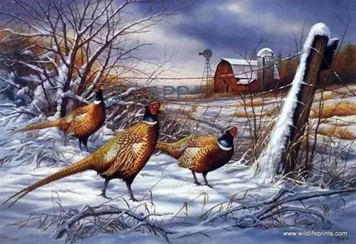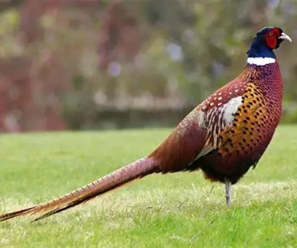 雉鸡(学名:Phasianus colchicus):共有30个亚种。体形较家鸡略小,但尾巴却长得多。雄鸟和雌鸟羽色不同,雄鸟羽色华丽,多具金属反光,头顶两侧各具有一束能耸立起而羽端呈方形的耳羽簇,下背和腰的羽毛边缘披散如发状;翅稍短圆;尾羽18枚,尾长而逐渐变尖,中央尾羽比外侧尾羽长得多,雄鸟尾羽羽缘分离如发状;雄鸟跗跖上有短而锐利的距,为格斗攻击的武器,近年来还发现距的长度与其所拥有的配偶数量明显相关,是雌鸟选择配偶的一个重要标准。