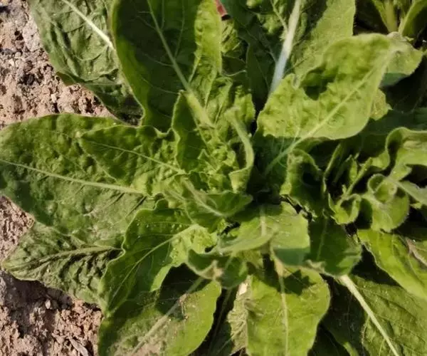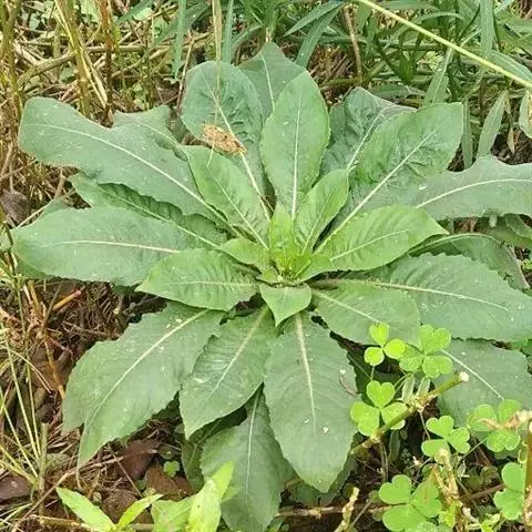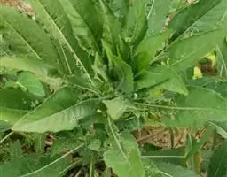 基生叶倒披针形,长10~25厘米,宽2~4.5厘米,先端锐尖,基部楔形,边缘疏生不整齐的浅钝齿,侧脉每侧12~15条,两面被曲柔毛与长毛;叶柄长1.5~3厘米。茎生叶椭圆形至倒披针形,长7~20厘米,宽1~5厘米,先端锐尖至短渐尖,基部楔形,边缘每边有5~19枚稀疏钝齿,侧脉每侧6~12条,每边两面被曲柔毛与长毛,尤茎上部的叶下面与叶缘常混生有腺毛;叶柄长0~15毫米。