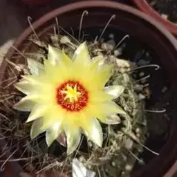 龙王球(学名:Thelocactus setispinus (Engelm.) E.F. Anderson)是仙人掌科瘤玉属植物。茎球形至短圆筒形,高15-30厘米,径8-12厘米,浓绿色,顶部凸起,13棱,棱脊高白色带褐晕,刺座排列密。花冠漏斗状,着生茎顶部,花多数,长5-7.5厘米,径6-8厘米,外瓣黄绿色,先端有红晕,内瓣鲜黄色,基部红色,芳香。花期5-7月。果近圆形,红色,能保持到翌年。