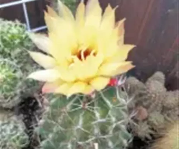 江守玉为仙人掌科强刺球属,植株扁圆形至球形,后成圆柱状,体色灰绿,刺座上附生白色绒毛,花橙黄色,漏…