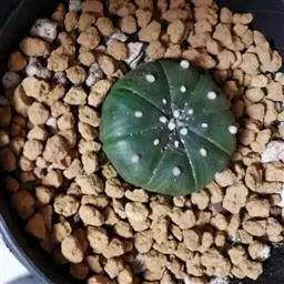 龙王球性喜排水透气的砂壤土,栽培时,挑选大小适宜的土陶花盆,基质可用粗砂土4份、砂质菜园土3份、泥炭土2份、骨粉加腐熟的麦草屑1份配制,如果酸碱度达不到,还可加人少量的消石灰(老墙石灰),配好后充分混合,曝晒数日后,整细过媂,便可上盆进行栽培。操作时,可带土团拟取幼苗,植于花盆中央,浇透定根水,再把花盆置于半荫蔽的通风处,7-10天后就可进行正常管理。