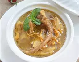 猪肚黄芪汤是广东省传统的名点,属于粤菜系。主要原材为猪肚、黄芪、陈皮等。将猪肚去脂膜,洗净,黄芪、…
