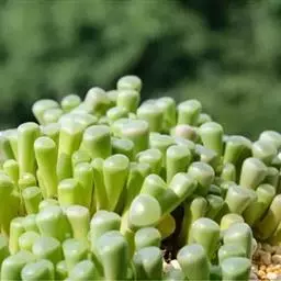 五十铃玉是番杏科窗玉属的多年生肉质植物,别名有“棒叶花”“婴儿脚趾”。植株高5厘米,叶片淡绿色,肉质,…
