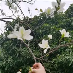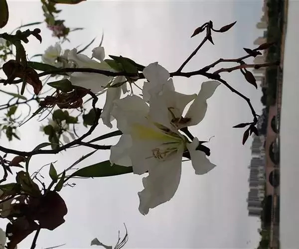 白花羊蹄甲(学名:Bauhinia variegata L.)羊蹄甲属,又名老白花皮,白花洋紫荆。叶近革质,花序总状或伞房状,顶生或侧生,总花梗短而粗,花托长12毫米,花蕾纺锤形;苞片及小苞片卵形,早落;花萼佛焰苞状,花大,花瓣白色或淡红色。花期3-5月,果期5-8月。