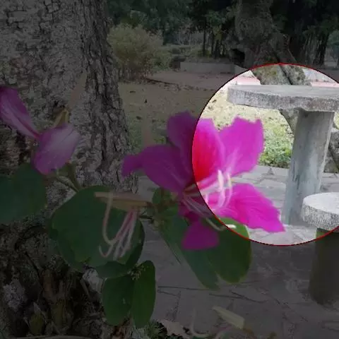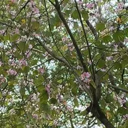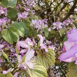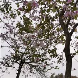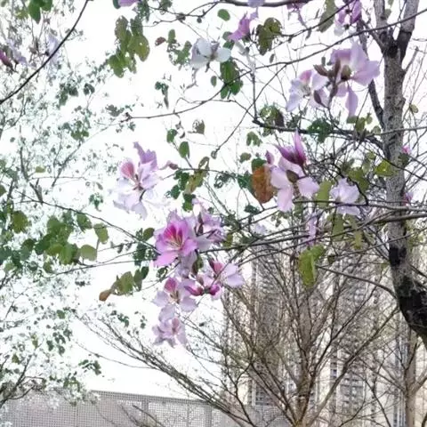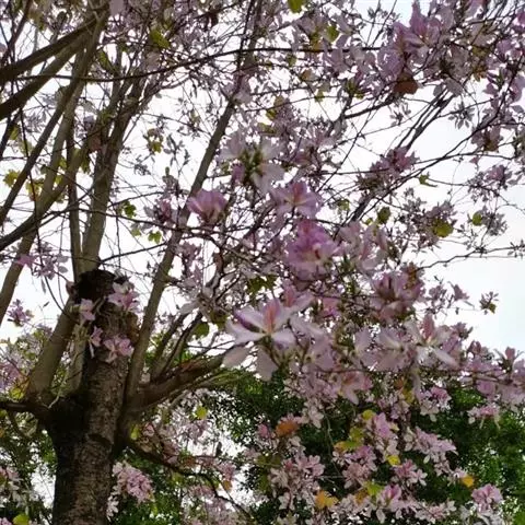 洋紫荆:落叶乔木;树皮暗褐色,近光滑;幼嫩部分常被灰色短柔毛;枝广展,硬而稍呈之字曲折,无毛。叶近…