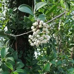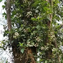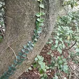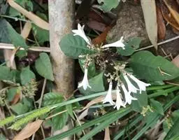 蔓九节是茜草科九节属的攀援或匍匐藤本植物。常以气根攀附树干或岩石;幼枝无毛或有粃糠状柔毛;幼树叶卵形或倒卵形,托叶膜质;圆锥状或伞房状聚伞花序顶生,苞片和小苞片线状披针形,花萼倒圆锥形,花冠白色,冠筒与裂片近等长,裂片长圆形;浆果状核果球形或椭圆形;花期4-6月;果期全年。因叶片紧贴着树干往上生长,宛如一条青龙上树,故又名“上树龙”。蔓九节分布在中国浙江、福建、台湾等省地,在日本、朝鲜、越南等国也有分布,生长在海拔70-1360米的平地、丘陵、山地、山谷水旁的灌丛或林中。喜温暖湿润,不耐寒,耐荫,适宜选用排水良好、富含有机质的砂质土壤。蔓九节在《世界自然保护联盟濒危物种红色名录》中属于无危。繁殖方法一般为扦插、压条、播种繁殖。据《福建药物志》中记载蔓九节“有祛风除湿,舒筋活络的功效。主治风湿关节痛,头风痛,手足麻木坐骨神经痛,腰肌劳损,