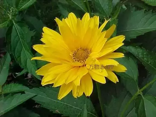 多年生草本,株高70~150cm。茎枝光滑,叶矩圆形或卵状披针形, 上面无毛,下面具柔毛,边缘具粗齿。头状花序,单生;舌状片先端渐尖,黄色。 瘦果 。