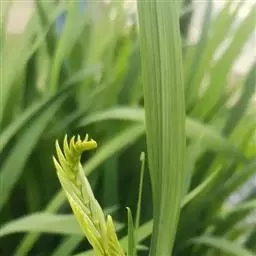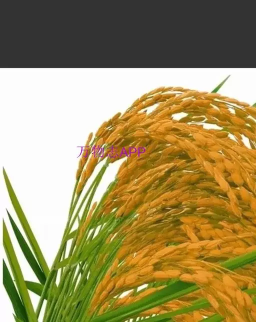 水稻 一年生草本。秆直立,高0.5-1.5米,随品种而异。叶鞘松弛,无毛;叶舌披针形,长10-25毫米,两侧基部下延长成叶鞘边缘,具2枚镰形抱茎的叶耳;叶片线状披针形,长40厘米左右,宽约1厘米,无毛,粗糙。