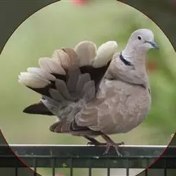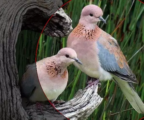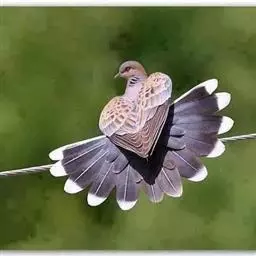 欧斑鸠体长27厘米,是一种体型略小的粉褐色斑鸠。颈侧具多黑白色细纹的斑块,翼覆羽深褐,…