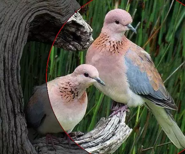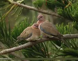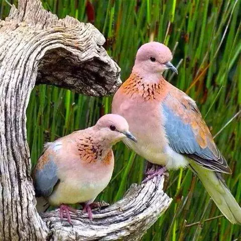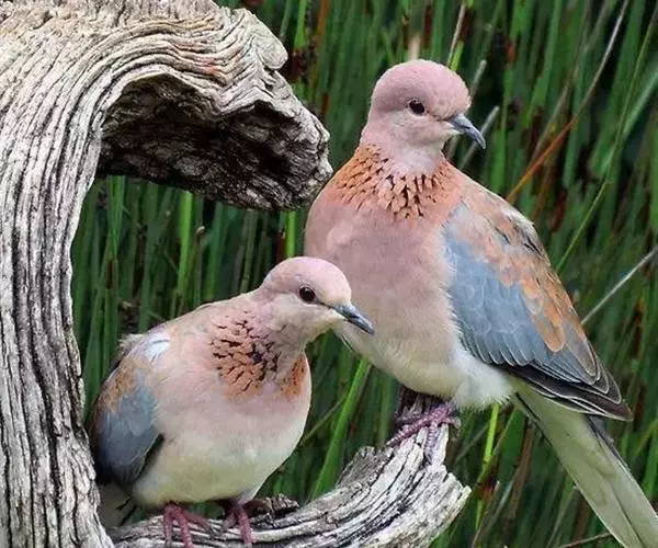 棕斑鸠(学名:Spilopelia senegalensis):体重95-121克,体长250-288毫米。是一种粉褐色斑鸠。尾长而翼短。与灰斑鸠区别在体型较小,无黑色颈环,色彩较深,更似欧斑鸠。无欧斑鸠那种颈部和翼上的图纹,但具带黑色斑点的褐色颈带。外侧尾羽羽端白,具独特的蓝灰色翼斑。虹膜褐色,嘴灰色,脚粉红。