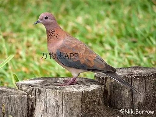 棕斑鸠,是鸽形目鸠鸽科斑鸠属鸟类。整个头和颈淡粉红色,头顶和前额较暗,颊、喉较淡,…