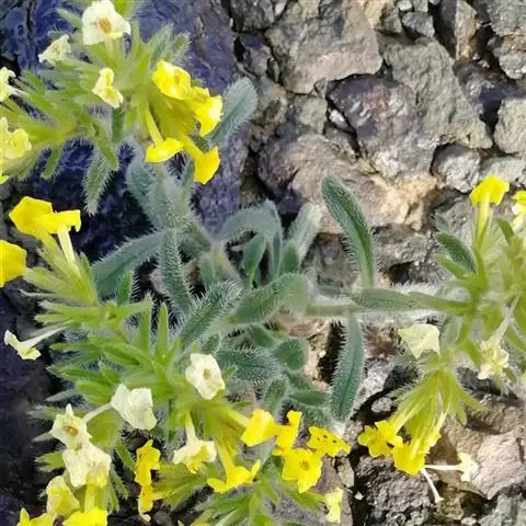 软紫草〔拉丁学名:Arnebia euchroma (Royle)Johnst.〕,1959年中国植物志将新疆紫草正名为:软紫草。 软紫草是紫草科,软紫草属多年生草本植物。有硬毛或柔毛。根含紫色物质。茎直立或铺散,茎高可达25厘米,叶互生,基生叶披针状条形或条形,花絮为镰状聚伞花序,近球形,密生多数花;苞片条状披针形或条形,比花短;花冠紫色,筒与萼近等长,基部无环,檐部钟状,喉部无附属物,小坚果卵形,有疣状突起。