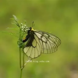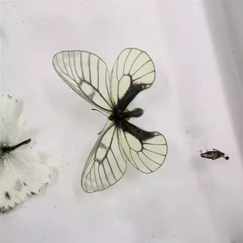 冰清绢蝶:是绢蝶科、绢蝶属的一种蝴蝶。翅展60-70毫米。翅白色,翅脉灰黑褐色。…