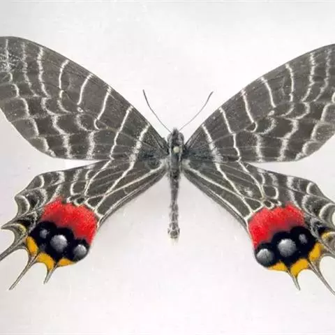 长尾麝凤蝶是凤蝶科、麝凤蝶属蝴蝶。翅黑色或黑褐色,前翅脉纹两侧灰色或黄褐色。后翅外缘波状,…