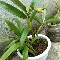 通常选用四壁多孔的塑料或陶瓷花盆,用碳根、泥炭藓、树皮块、木炭块等作盆栽材料。根据兰苗的大小,选择不同规格的花盆,但不宜用大盆栽小苗口上述栽好材料在使用前必需在清水中浸泡1天以上备用。盆底要多垫大瓦片或碎砖块,深度至盆底约1/3处,然后将兰苗放于盆中央,并在一旁插一细竹竿以固定兰苗,再填入其他栽培材料,注意根与根之间用材料隔开。
