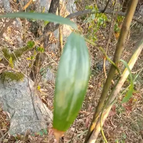 黄石斛:茎直立或下垂,多少肉质,细圆柱形,不分枝,具多数节。叶革质,长圆状披针形,…