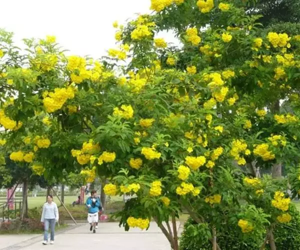 黄钟花可有来做行道树、绿篱、庭园美化、盆栽;可单植、列植、丛植。春天开花成簇,具观花效果。