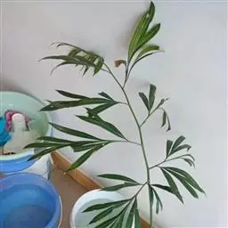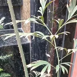 叶片形状 果然,在山脚下的一片地里,记者拨开掩盖在上面的荞麦苗,找到了被移栽的德保苏铁。据村民们说,移栽德保苏铁的是村里的两家人,记者找到了其中一家,在屋顶上也看到了被移栽的十几株德保苏铁。面对记者所提出的“为什么要移栽苏铁”的问题,这位叫李荣灿的村民有些闪烁其词,但记者看得出,他丝毫没有意识到自己的做法将会给这种濒危的植物带来什么样的影响。