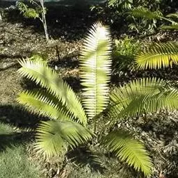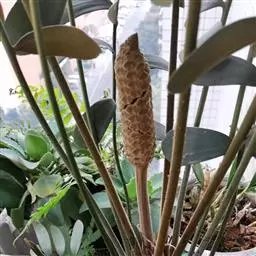 泽米苏铁科苏铁属。植物丛生,茎撑球状,叶为中型羽状复叶,簇生于茎顶,小叶为卵状椭圆形。雄雌异株,雄…
