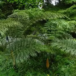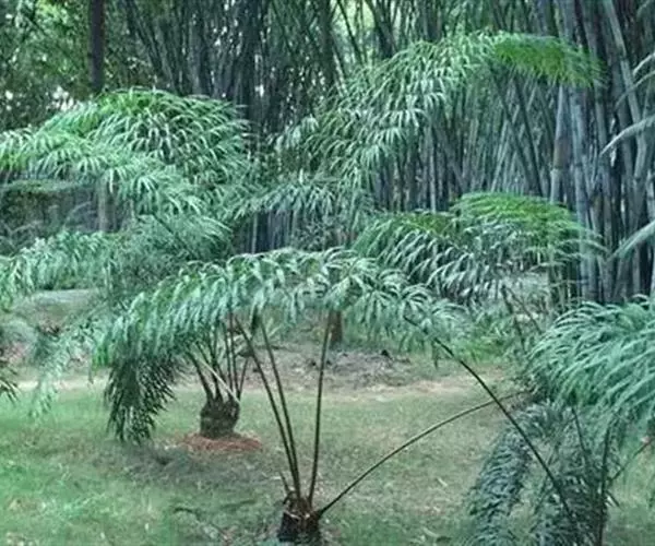 篦齿苏铁:树干圆柱形,高达3米。羽状叶长1.2-1.5米,叶轴横切面圆形或三角状圆形,柄两侧有疏刺,…