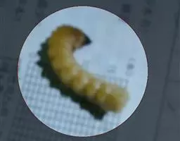 斗米虫为锈色粒肩天牛的幼虫,锈色粒肩天牛主要危害槐树Sophora japonica,…