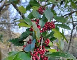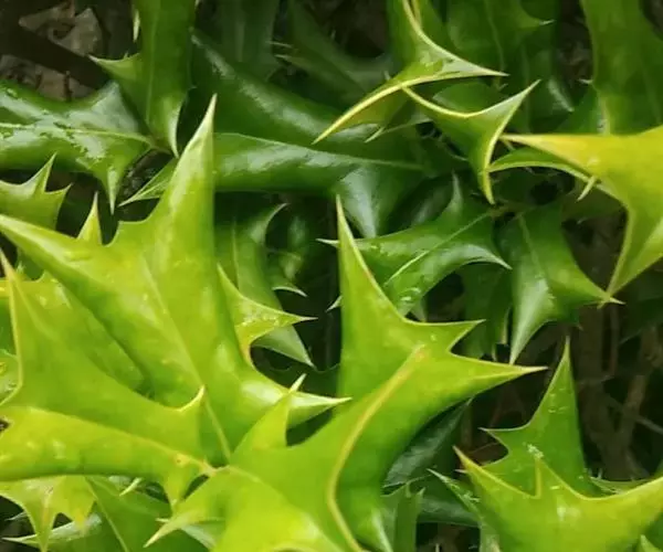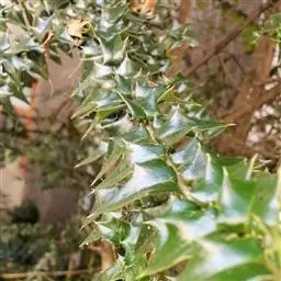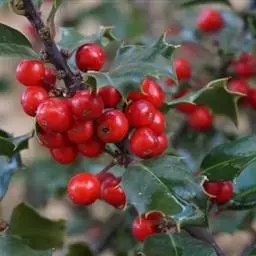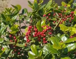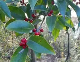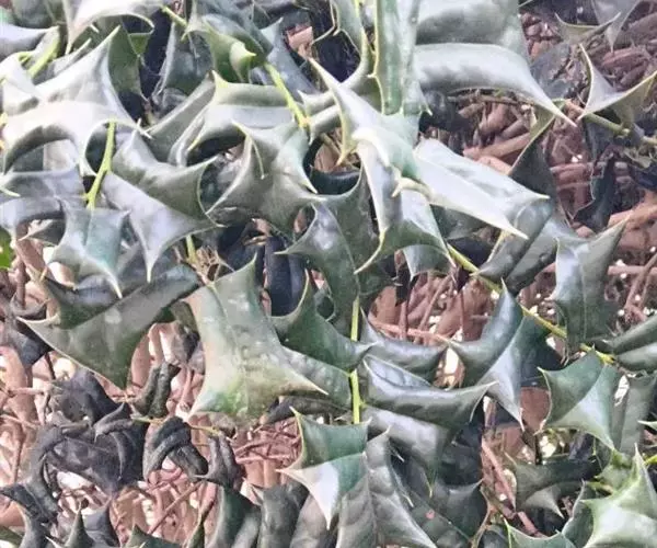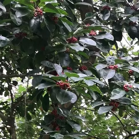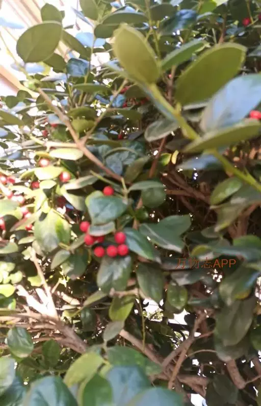 枸骨(学名:Ilex cornuta)又名猫儿刺、老虎刺等,为常绿灌木或小乔木,叶形奇特,碧绿光亮,四季常青,入秋后红果满枝,经冬不凋,艳丽可爱,是优良的观叶、观果树种,在欧美国家常用于圣诞节的装饰,故也称“圣诞树”。