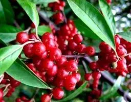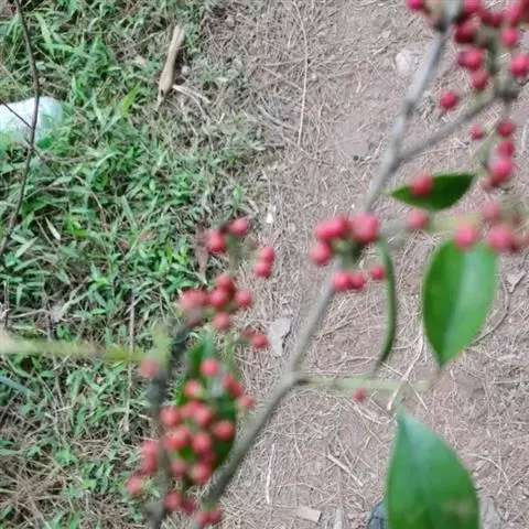 果球形,直径8~10毫米,成熟时鲜红色,基部具四角形宿存花萼,顶端宿存柱头盘状,明显4裂;果梗长8~14毫米。分核4,轮廓倒卵形或椭圆形,长7~8毫米,背部宽约5毫米,遍布皱纹和皱纹状纹孔,背部中央具1纵沟,内果皮骨质。花期4~5月,果期10~12月。